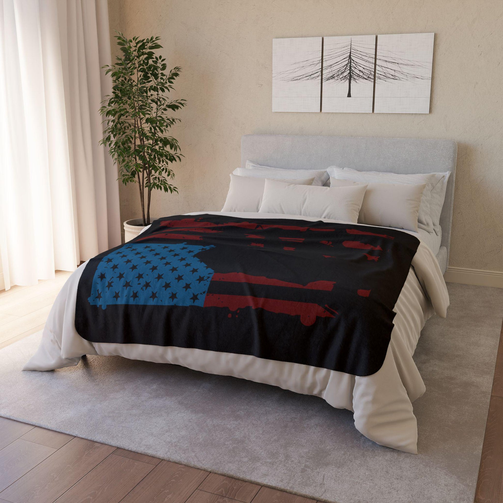 Patriotic Fleece Sherpa Blanket - Cozy Military Tribute Blanket, Outdoor Adventure Gift, American Flag Decor, Remembrance Day, Veterans Day