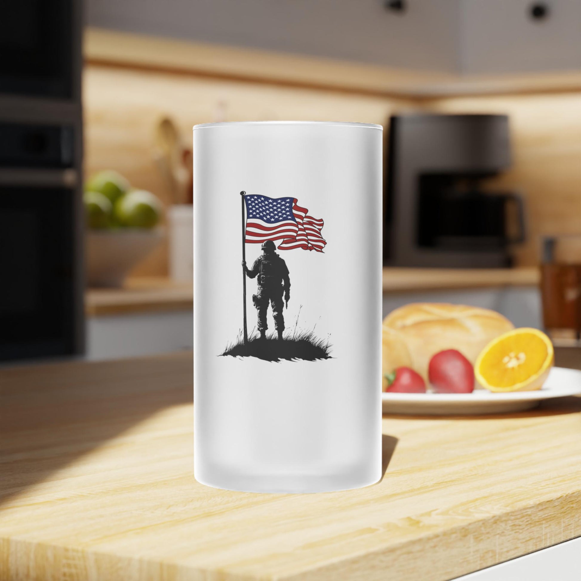 Patriotic Frosted Glass Beer Mug - Perfect for Veterans Day, Memorial Day, Independence Day, Gifts for Him, Beer Lovers